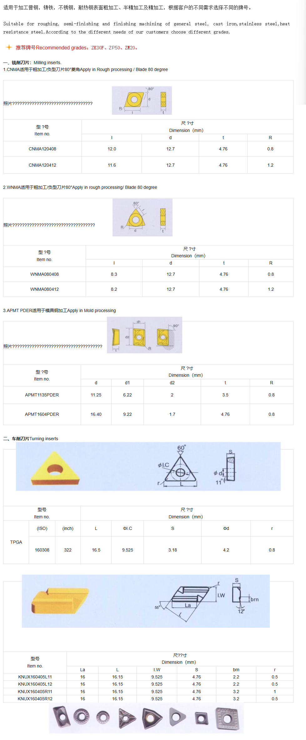 硬質(zhì)合金可轉(zhuǎn)位刀片/Carbide indexable inserts